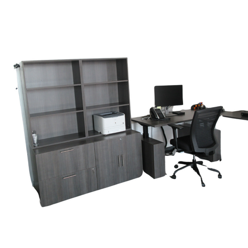 AIS Private Office with Sit Stand Desk and Bookcases Cabinets